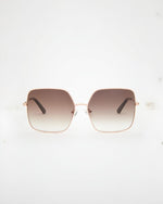 Dessa överdimensionerade fyrkantiga solglasögon har en fantastisk guldfärgad båge som ger en djärv och självsäker touch till vilken look som helst. Den klassiska fyrkantiga formen skapar ett tidlöst uttalande som är perfekt för den moderna kvinnan som värdesätter premiumstil.